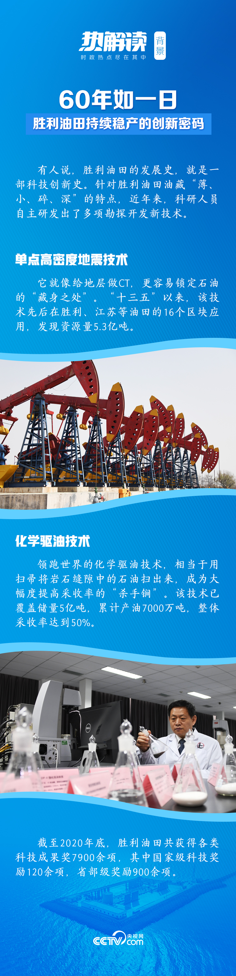 總書記此次專程考察的勝利油田正是我國(guó)能源領(lǐng)域持續(xù)推進(jìn)科技創(chuàng)新的一個(gè)縮影。一代又一代石油人,從創(chuàng)業(yè)走向創(chuàng)新,用科技為祖國(guó)發(fā)掘石油。60年來(lái),勝利油田發(fā)現(xiàn)81個(gè)油氣田,累計(jì)生產(chǎn)原油超過(guò)12億噸,約占同期全國(guó)陸上原油總產(chǎn)量的五分之一,創(chuàng)造了老油田持續(xù)穩(wěn)產(chǎn)的奇跡。