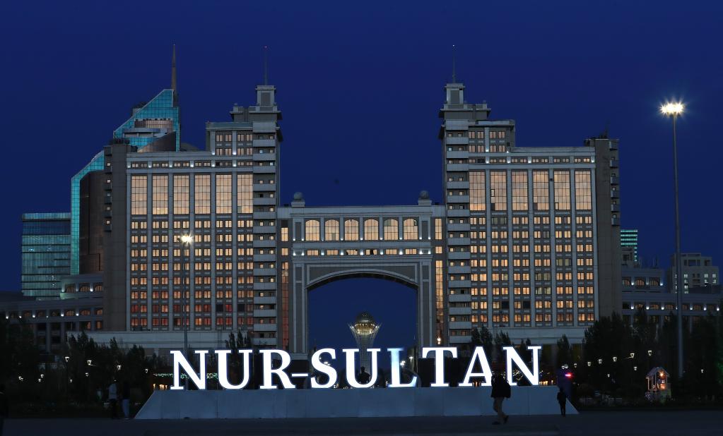 哈薩克斯坦首都努爾蘇丹的城市夜景。新華社記者 魯金博 攝