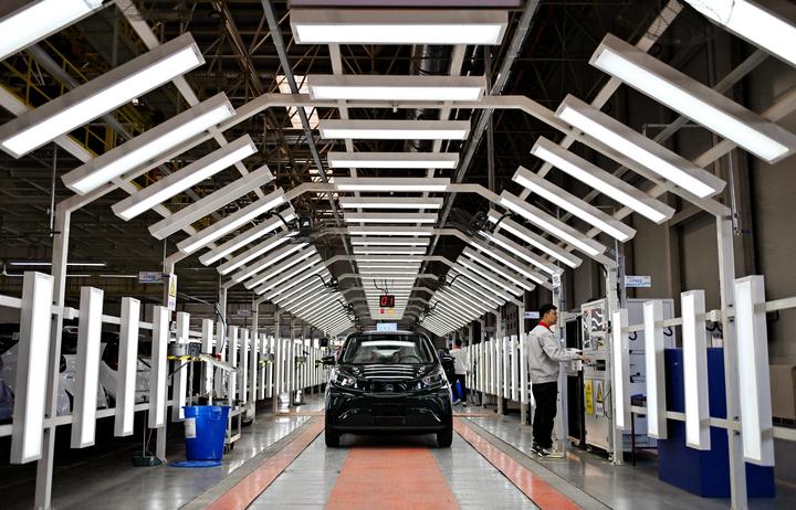 3月19日,奇瑞新能源汽車股份有限公司石家莊分公司的工人在總裝車間檢測(cè)線上工作。新華社記者 牟宇 攝