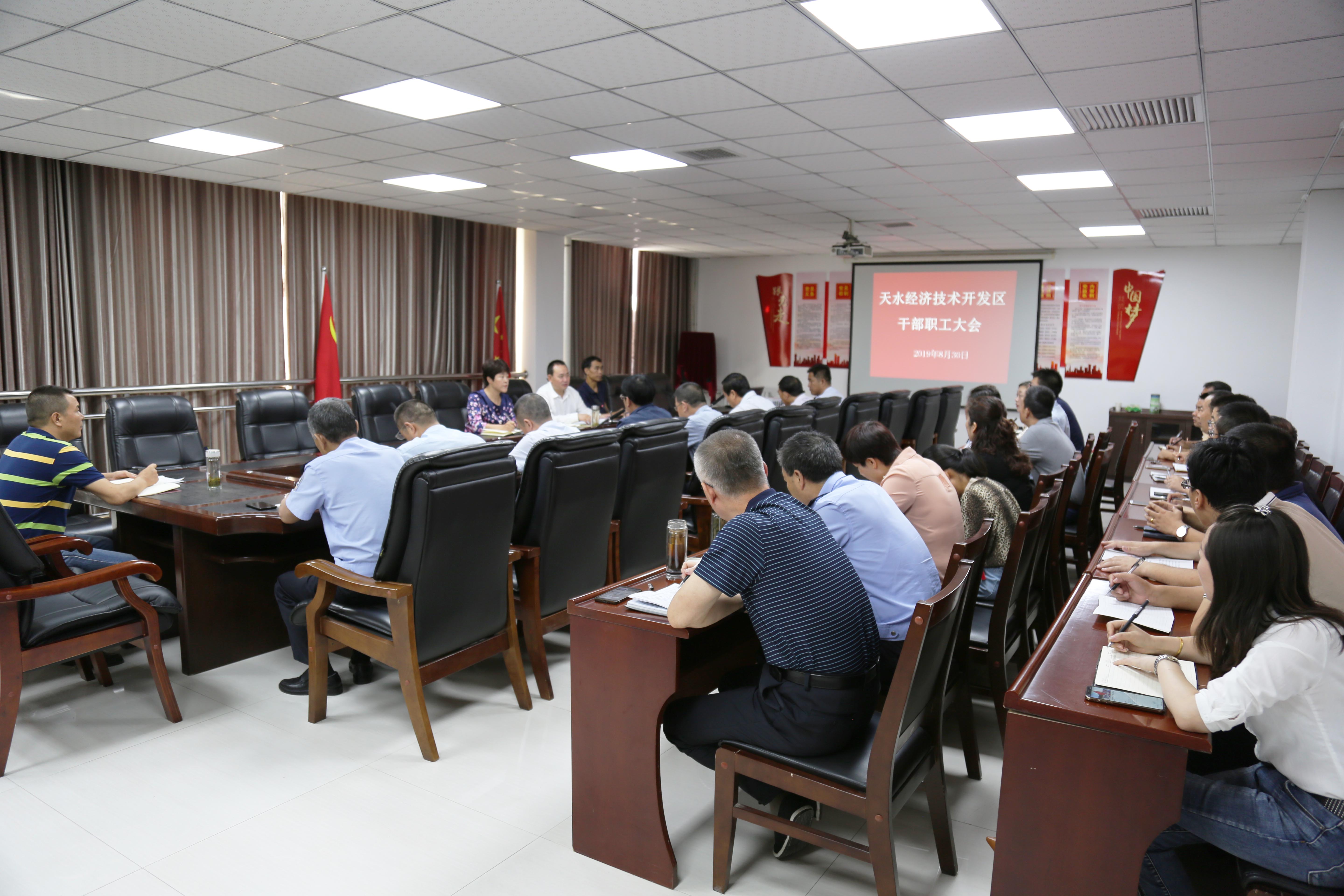 8月30日上午,天水經(jīng)濟(jì)技術(shù)開發(fā)區(qū)召開干部職工大會(huì),傳達(dá)學(xué)習(xí)習(xí)近平總書記視察甘肅重要講話和指示精神,以及全省、全市領(lǐng)導(dǎo)干部大會(huì)精神,安排部署學(xué)習(xí)宣傳貫徹工作。黨工委書記、管委會(huì)主任楊棟主持會(huì)議并講話,管委會(huì)機(jī)關(guān)和派駐單位中層以上領(lǐng)導(dǎo)干部、天水經(jīng)濟(jì)發(fā)展公司和經(jīng)開區(qū)第一小學(xué)班子成員參加會(huì)議。