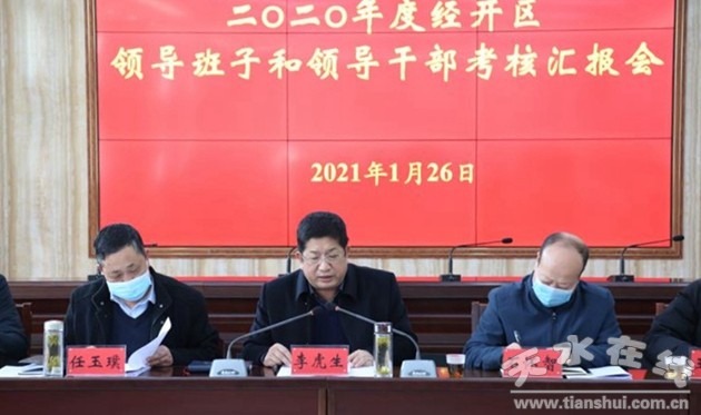 1月26日,天水市委第二考核組一行在李虎生組長(zhǎng)的帶領(lǐng)下,對(duì)經(jīng)開區(qū)2020年度市管領(lǐng)導(dǎo)班子和領(lǐng)導(dǎo)干部、黨風(fēng)廉政建設(shè)、意識(shí)形態(tài)工作責(zé)任制等方面進(jìn)行考核。經(jīng)開區(qū)黨工委書記、主任胡亞軍主持會(huì)議,領(lǐng)導(dǎo)班子成員、調(diào)研員、機(jī)關(guān)全體干部職工參加了會(huì)議。
