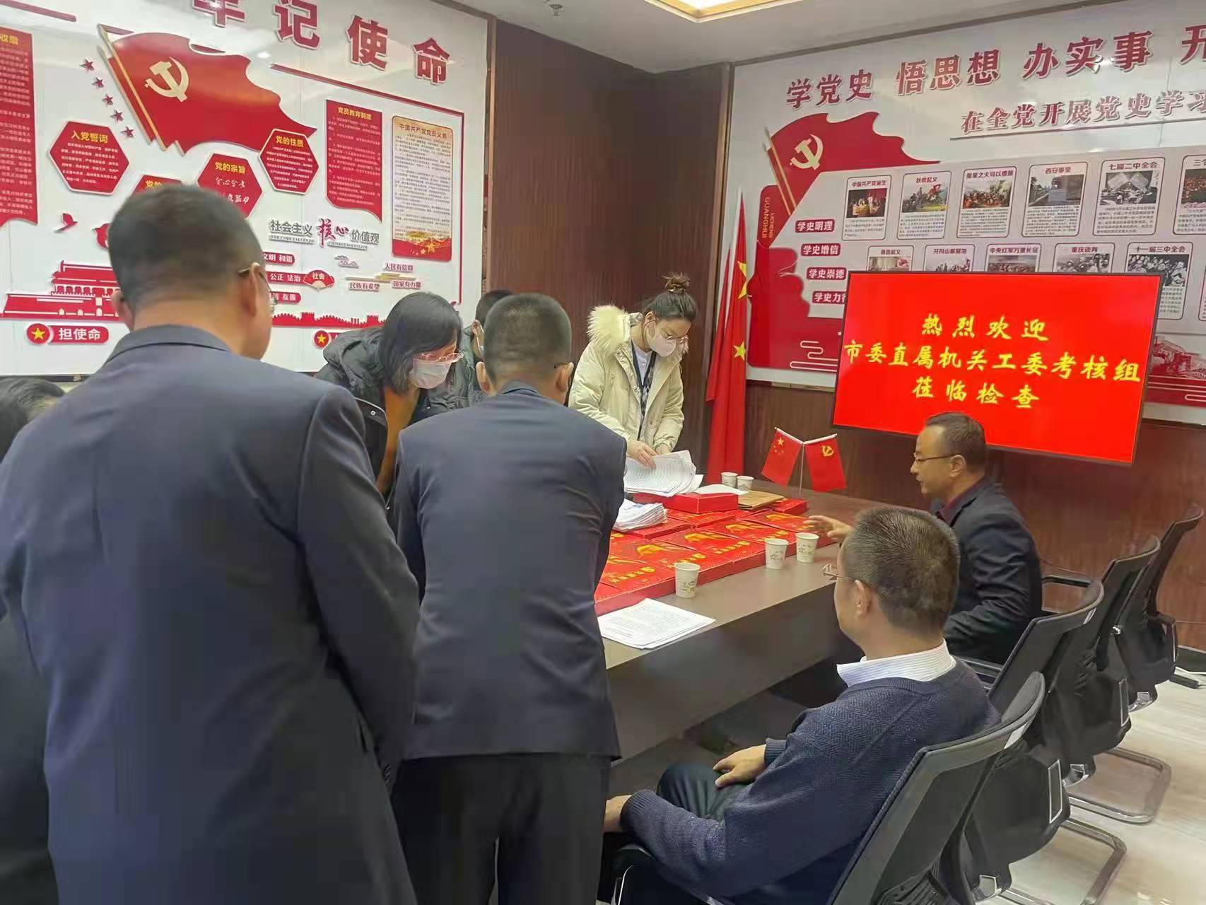 在管委會(huì)機(jī)關(guān)黨支部黨員活動(dòng)室,于愛(ài)平、趙小平圍繞考核重點(diǎn)對(duì)經(jīng)開(kāi)區(qū)2021年度黨建工作情況、重點(diǎn)任務(wù)落實(shí)情況和主要工作成效作了簡(jiǎn)要匯報(bào),考核組通過(guò)實(shí)地查看、查閱記錄臺(tái)賬、工作細(xì)節(jié)及應(yīng)知應(yīng)會(huì)知識(shí)問(wèn)答等形式對(duì)黨工委、直屬機(jī)關(guān)黨委抓黨建工作及管委會(huì)機(jī)關(guān)支部標(biāo)準(zhǔn)化創(chuàng)建情況進(jìn)行了全面檢查,并對(duì)下一步工作提出了明確要求。