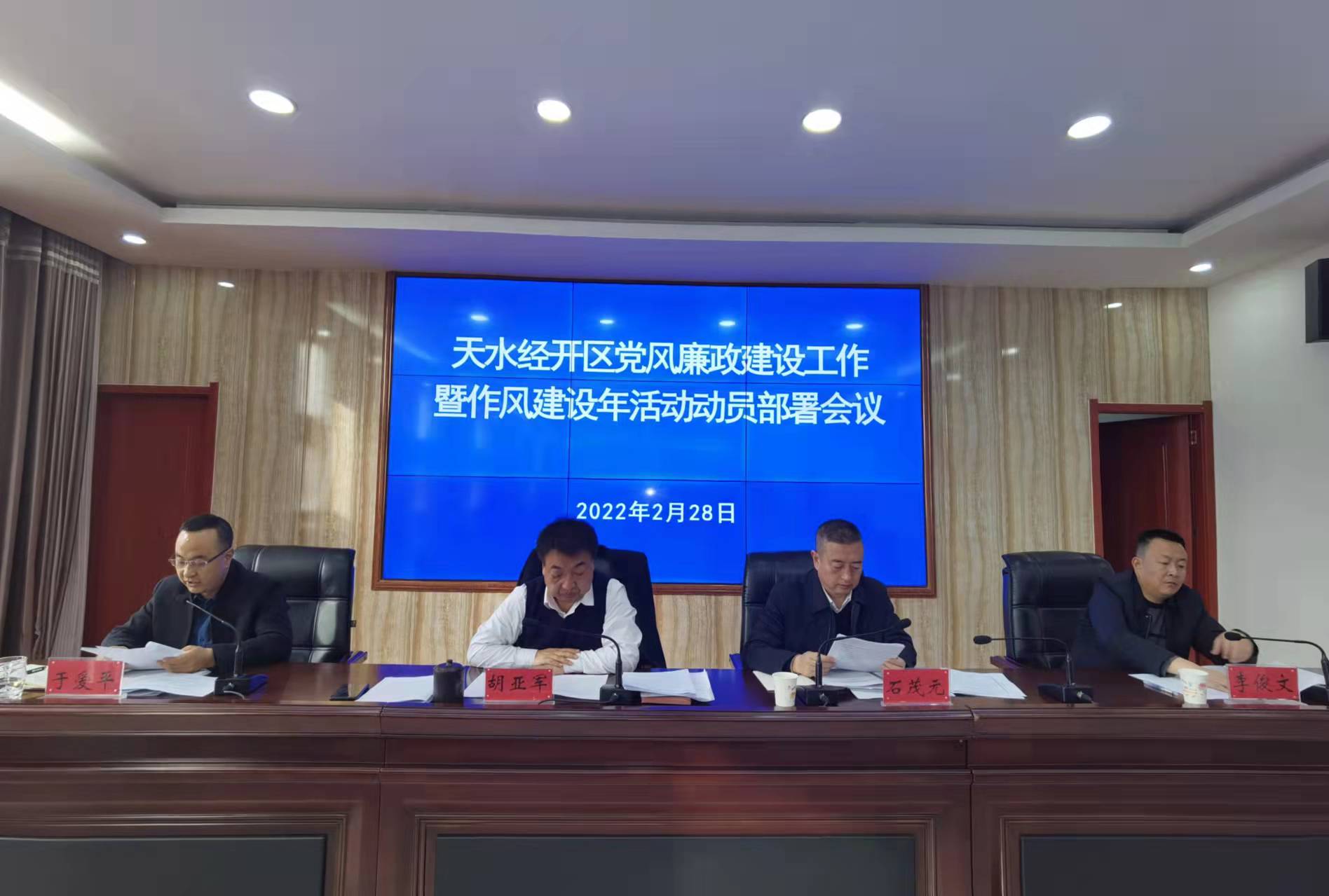 2月28日,天水經(jīng)開區(qū)召開黨風(fēng)廉政建設(shè)工作暨作風(fēng)建設(shè)年活動(dòng)動(dòng)員部署會(huì)議,認(rèn)真學(xué)習(xí)貫徹落實(shí)十九屆中央紀(jì)委六次全會(huì)、十三屆省紀(jì)委六次全會(huì)、八屆市紀(jì)委二次全會(huì)和全市作風(fēng)建設(shè)年動(dòng)員會(huì)議精神,回顧總結(jié)2021年黨風(fēng)廉政建設(shè)和反腐敗工作,安排部署今年黨風(fēng)廉政建設(shè)和作風(fēng)建設(shè)年活動(dòng)各項(xiàng)工作任務(wù)。