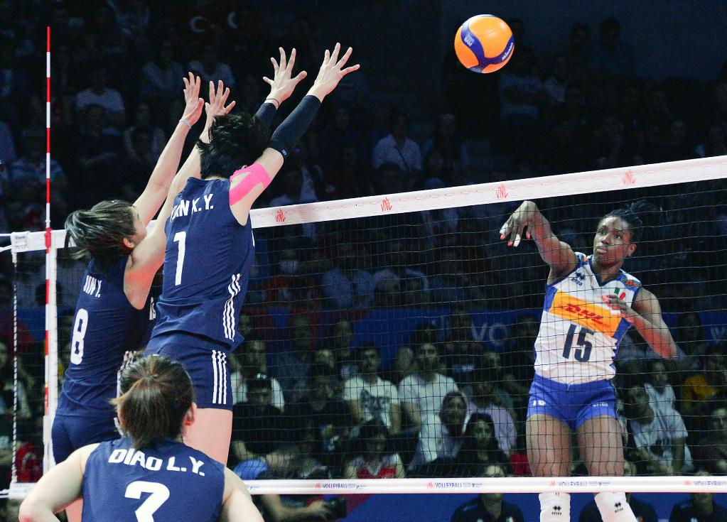 得分方面,中國隊主攻李盈瑩拿到全隊最高的21分,接應(yīng)龔翔宇貢獻(xiàn)17分。意大利隊主攻德格拉迪拿到全場最高的23分。