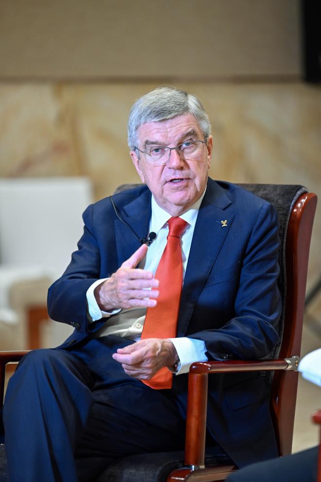 9月22日,國際奧委會主席巴赫在杭州接受新華社記者專訪。新華社記者 陳曄華 攝