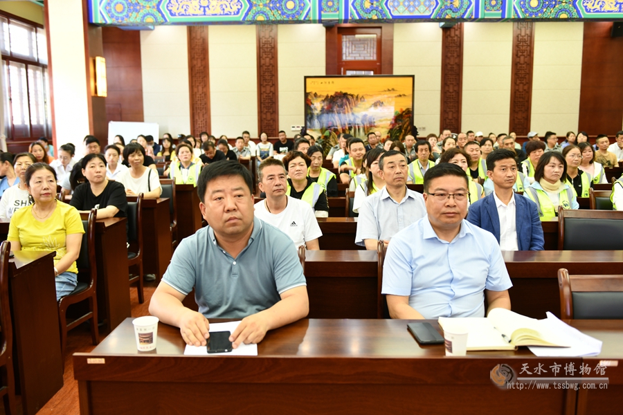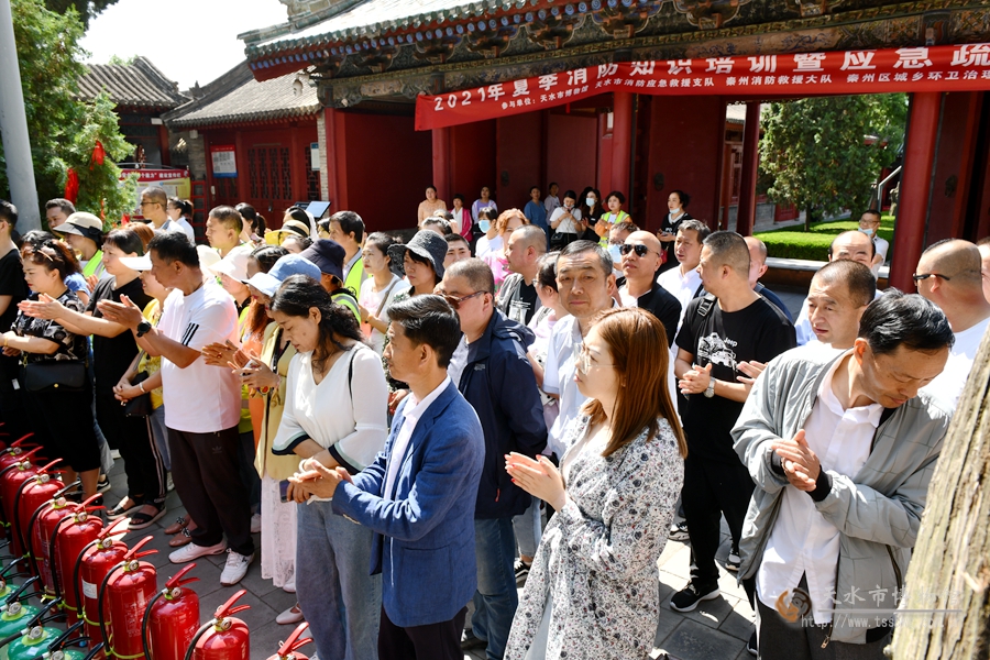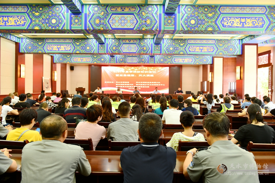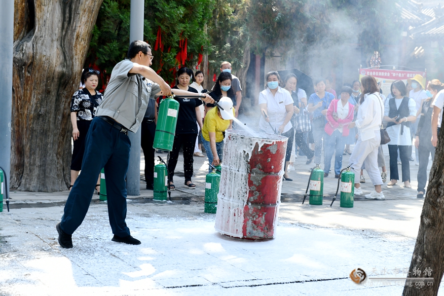 為深入貫徹落實(shí)習(xí)近平總書記關(guān)于安全生產(chǎn)重要論述精神,嚴(yán)格落實(shí)安全生產(chǎn)主體責(zé)任,確保2021年公祭伏羲大典順利進(jìn)行,結(jié)合國家、省、市文物局對(duì)開展“安全生產(chǎn)月”活動(dòng)的統(tǒng)一部署和明確要求,有效落實(shí)近期相關(guān)安全文件及年初與相關(guān)單位簽訂的《安全目標(biāo)管理責(zé)任書》精神,進(jìn)一步夯實(shí)天水市博物館安全基礎(chǔ)工作,化解重大安全風(fēng)險(xiǎn),切實(shí)做好市博物館、伏羲廟景區(qū)文物和建筑的火災(zāi)防控工作,提高工作人員安全意識(shí)和處置突發(fā)事件的應(yīng)變能力,切實(shí)推進(jìn)社會(huì)單位消防安全“四個(gè)能力”建設(shè),強(qiáng)化職工“安全第一”和“人民至上、生命至上”的理念,增強(qiáng)職工“保護(hù)文物功在當(dāng)代、利在千秋”的觀念,天水市博物館于2021年中國文化和自然遺產(chǎn)日當(dāng)天舉辦了消防知識(shí)培訓(xùn)暨應(yīng)急疏散和滅火演練活動(dòng)。市博物館館長(zhǎng)劉玉璞、副館長(zhǎng)崔文剛,市消防支隊(duì)、秦州區(qū)城鄉(xiāng)環(huán)衛(wèi)治理服務(wù)中心、秦州區(qū)西關(guān)街道辦事處、秦州區(qū)消防大隊(duì)等單位領(lǐng)導(dǎo)和工作人員約150余人參加了培訓(xùn)演練。