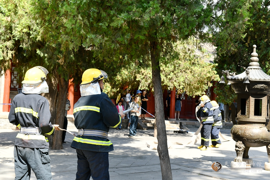 三是應(yīng)急疏散演練,F(xiàn)場(chǎng)工作人員聽到警報(bào)后,立即把大殿及展廳的游客按照就近快速的原則疏散到了安全地帶。