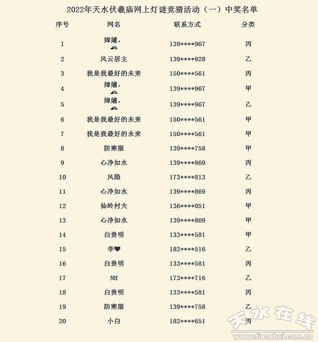 2022年天水伏羲廟網(wǎng)上燈謎競(jìng)猜活動(dòng)(二)及上期中獎(jiǎng)名單
