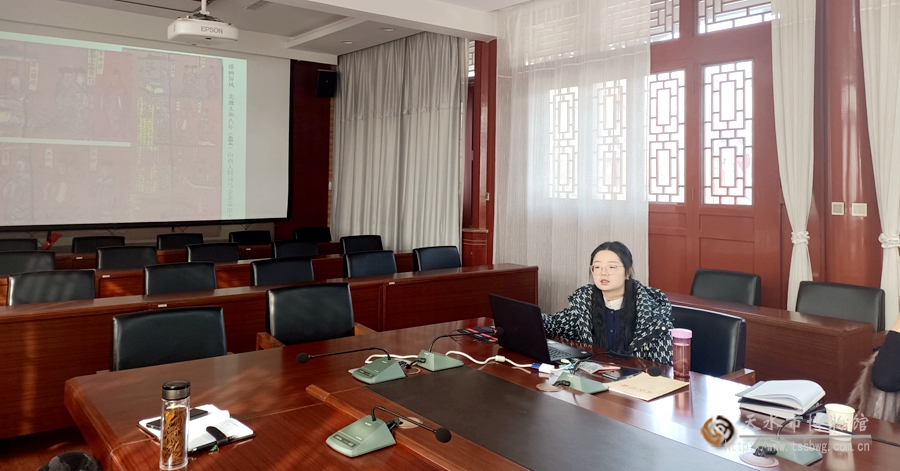 2月17日,文物保管部保管員王文珺通過(guò)文獻(xiàn)考據(jù)與文物案例相結(jié)合的方法,對(duì)晉唐道釋人物畫樣式中筆跡周密的“密體”及簡(jiǎn)易標(biāo)美的“疏體”兩種不同的風(fēng)格進(jìn)行了具體解析,進(jìn)而將其運(yùn)用到傳世繪畫作品與石窟壁畫等美術(shù)作品的研究中,強(qiáng)調(diào)將繪畫理論作為我們欣賞和判斷審美形態(tài)與藝術(shù)發(fā)展的重要標(biāo)尺,為文物鑒賞提供了重要的理論依據(jù)。
