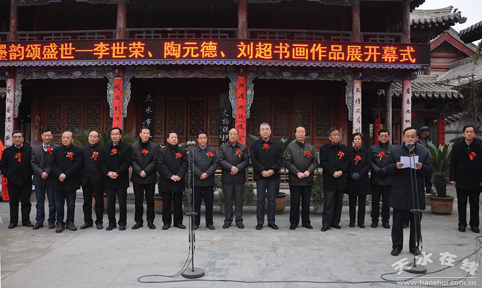 11月25日,霜葉墨韻頌盛世——李世榮 陶元德 劉超書畫作品展在天水市文化館隆重開幕。市政協(xié)副主席王振宇、劉永年、蘇定武,老干部喬正風、王志榮等出席開幕式。