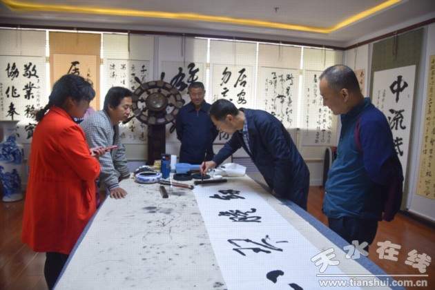 最后,市文化館書記、館長李靖親筆簽名留言,并為天水人防體驗館現(xiàn)場書寫書法作品。