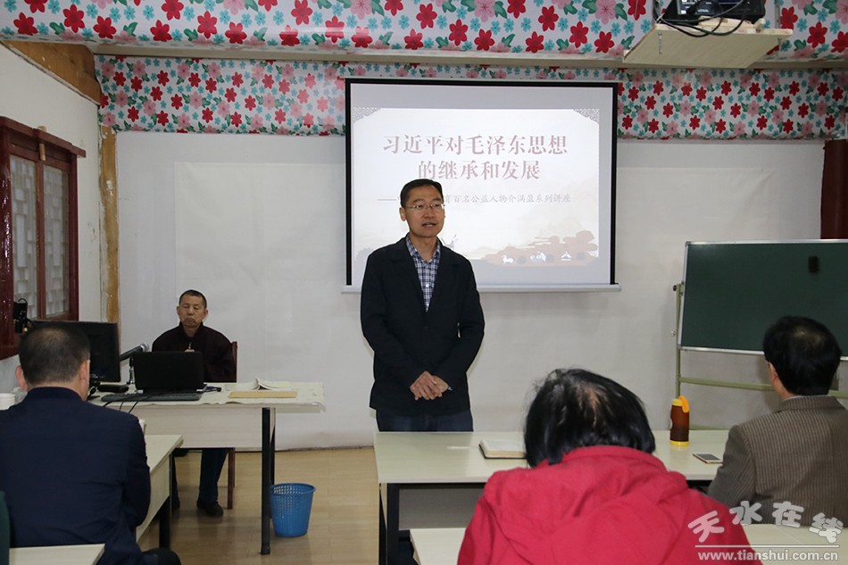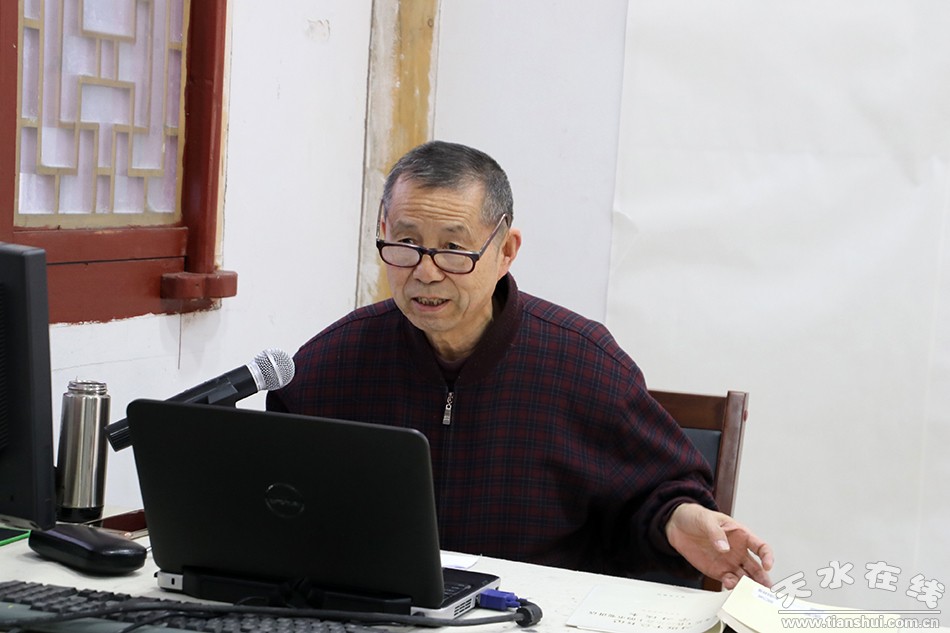 這次在市文化館舉辦的專題講座,是介滿盈同志利用退休時間,把自己對習近平總書記系列講話研究的心得、所思所想與大家進行了分享。介主任雖然已退休多年,但是始終不忘學習黨的政治理論,關注新時期黨的建設,情系天水文化的發(fā)展。講座中他重點主講了習總書記關于文化藝術方面對毛澤東思想的繼承和發(fā)展,分別從“習總書記所講的文化是什么、文化對一個國家意味著什么、習總書記為什么要提出文化自信、文藝界的亂象、習總書記開出的藥方、對毛澤東文藝思想的繼承和發(fā)展”六個方面進行了闡述。