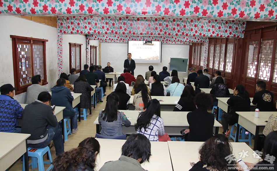 市委宣傳部講師團團長郭黎平、市文化和旅游局相關領導、市文化館全體職工、秦州區(qū)文化館班子成員及全體黨員等近80余人聆聽了講座。