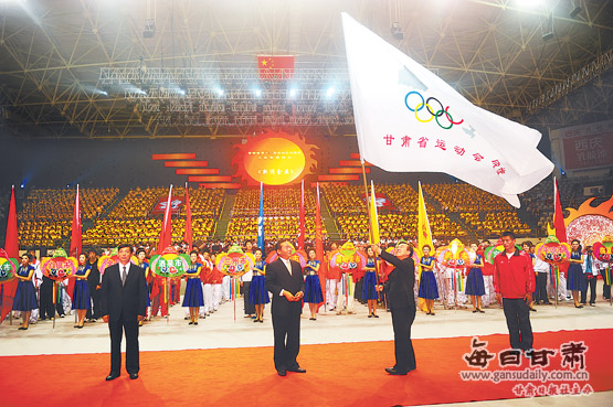 在今晚舉行的省十二運(yùn)會(huì)閉幕式上,白銀市代表接過(guò)了省十三運(yùn)會(huì)的大旗。