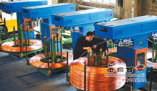白銀有色集團(tuán)公司西北銅加工公司無氧銅桿生產(chǎn)線。本報(bào)記者 李小龍
