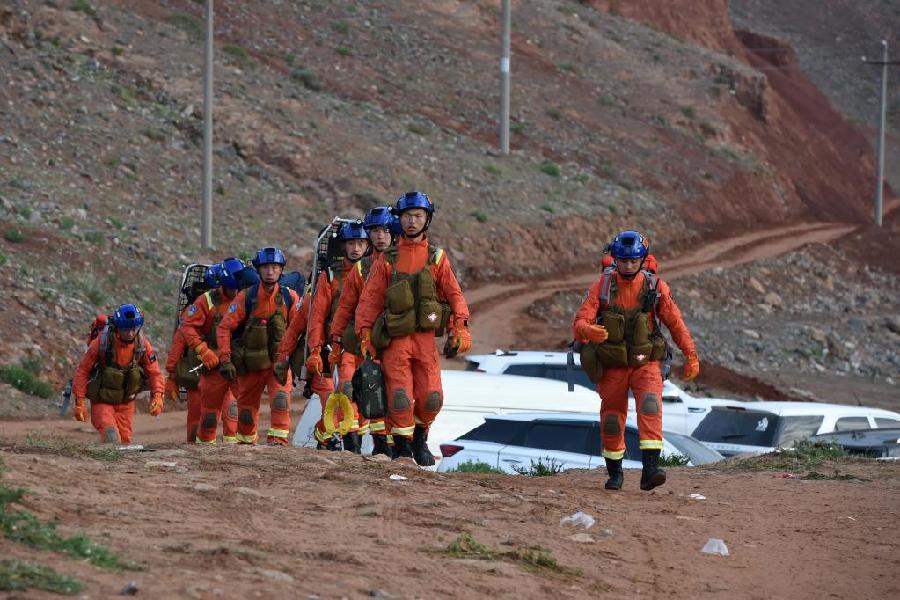 5月23日,救援人員徒步進入事發(fā)區(qū)域搜救失聯(lián)人員。新華社記者范培珅 攝