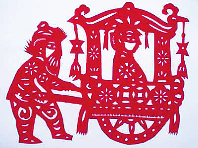 2007年2月17日,胡錦濤總書記在定西市安定區(qū)青嵐鄉(xiāng)大坪村與農(nóng)民一起歡度春節(jié)時(shí),見農(nóng)婦冉菊英正在剪窗花,也興致勃勃地剪出一張充滿喜慶色彩的《回娘家》貼在玻璃窗上。