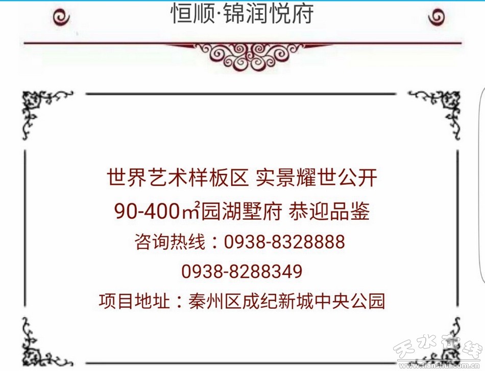 恒順·錦潤悅府,致力將世界繁華引入天水領(lǐng)先10年的品質(zhì)生態(tài)湖府,開創(chuàng)天水未來人居新時代!恒順·錦潤悅府擇址天水成紀新城之心,與藉河生態(tài)走廊一生為鄰,規(guī)劃中央公園私享園林,引入寰球名品商街、IMAX影院、洲際星級會所、國際幼兒園、一線城市醫(yī)療資源……以造天水不曾有的恢弘氣度,引領(lǐng)天水步入國際化高端生活。