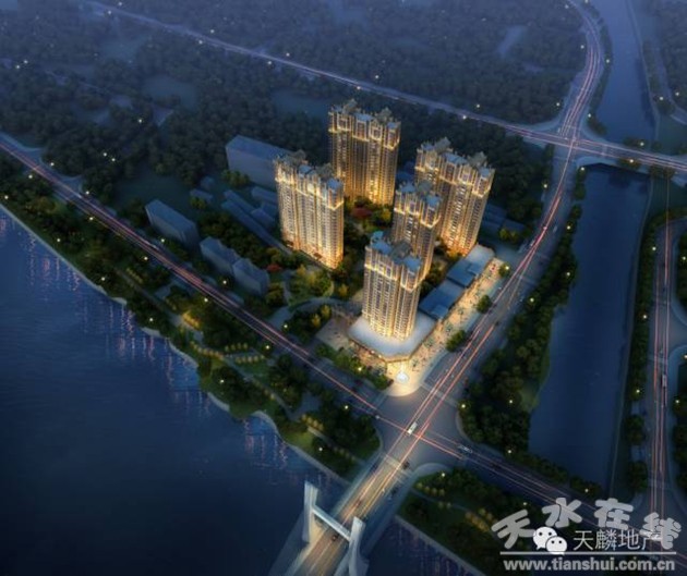 天麟·金水灣項目位于秦州區(qū)東橋頭原花鳥市場舊址,地處天水城市中心東核心區(qū)域。項目北接天水市第一人民醫(yī)院,東鄰即將落成的藉河羅峪大橋貫通南北,重要學區(qū)資源近在咫尺,藉河水穿城而過繞其東去,資源、交通、景觀匯聚于此,呈眾星拱月之勢依河而立。