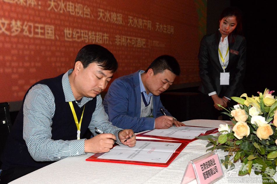 (甘肅天祺集團(tuán)有限公司與韓運(yùn)盛愛家燒烤店總經(jīng)理成昊現(xiàn)場(chǎng)簽訂“合作協(xié)議書”)