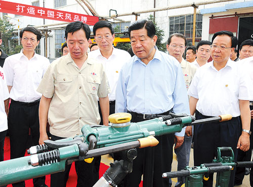 7月8日,賈慶林在天水風動機械有限公司調研。新華社記者 李學仁 攝