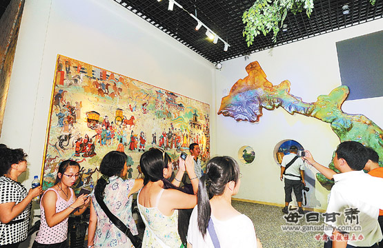 在“如意形”的甘肅版圖下方,陳列著中國旅游標(biāo)志“銅奔馬”的復(fù)制品,印證著甘肅深厚的文化底蘊(yùn)。
