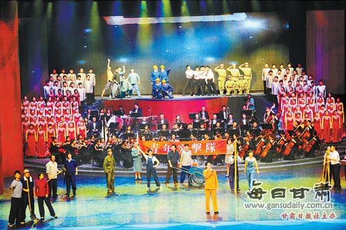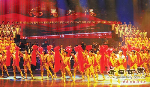 6月30日晚,“向著太陽”——甘肅省慶祝中國共產(chǎn)黨成立90周年文藝晚會在新落成的甘肅大劇院舉行。精彩紛呈的歌舞勾勒出中國共產(chǎn)黨的輝煌歷史,熱烈沸騰的掌聲傳達出觀眾共同的心聲。