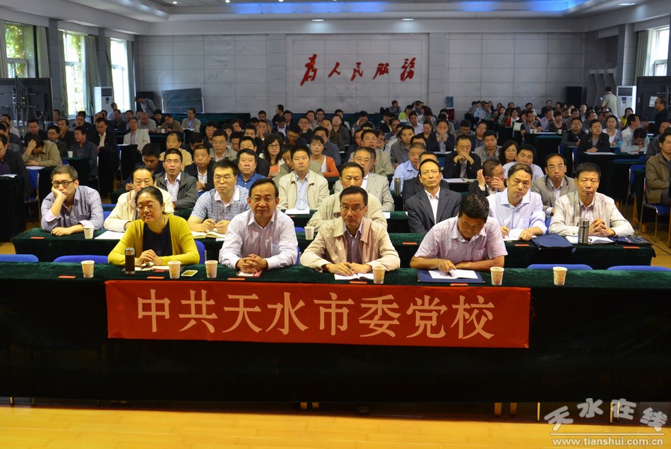 。ㄌ焖腥舜蟪N瘯(huì)副主任黃孝榮、市政協(xié)副主席王振宇及市直部門負(fù)責(zé)同志在天水市委黨校天水第一分會(huì)場(chǎng)聆聽講座。)