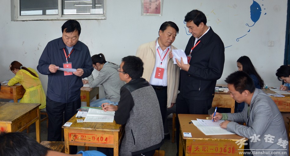 。▓D為天水市委常委、政法委書記趙衛(wèi)東,市人大常委會副主任王子生,副市長雷鳴在天水考區(qū)天水市職業(yè)技術學校一分部考點巡視。配圖:天水在線)