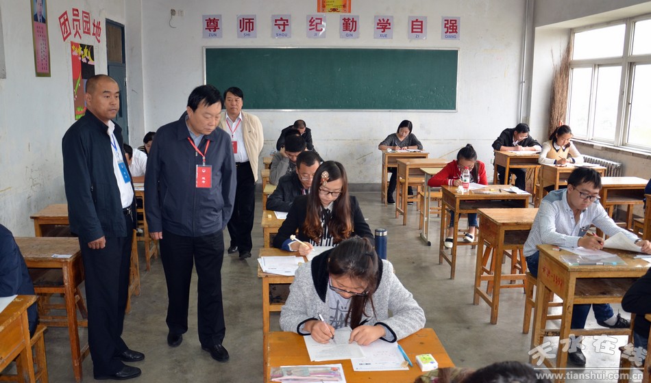 (圖為天水市委常委、政法委書記趙衛(wèi)東,市人大常委會副主任王子生,副市長雷鳴在天水考區(qū)天水市職業(yè)技術學校一分部考點巡視。配圖:天水在線)