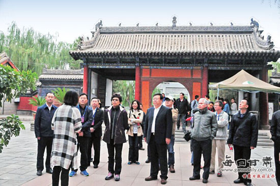 甘臺(tái)旅游交流合作團(tuán)在張掖大佛寺考察。