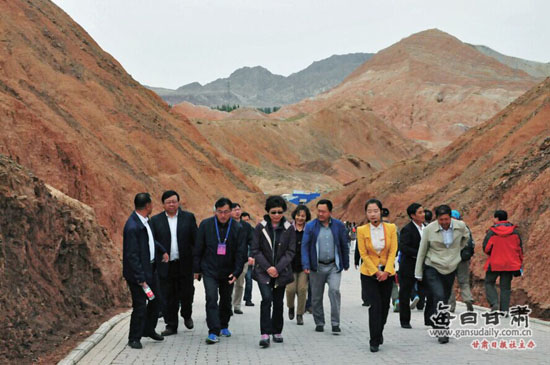 甘臺(tái)旅游交流合作團(tuán)在張掖丹霞地質(zhì)公園考察。
