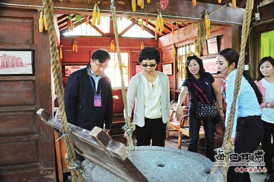 甘臺(tái)旅游交流合作團(tuán)在蘭州水車博覽園考察。
