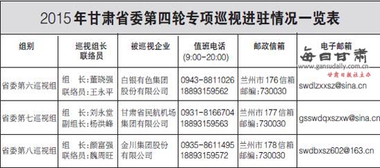 2015年甘肅省委第四輪專項巡視進駐情況一覽表