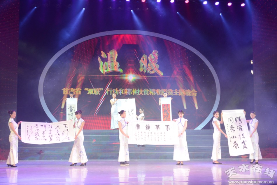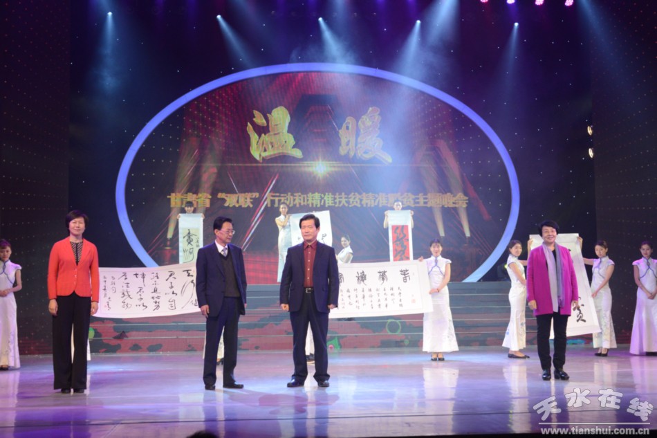 晚會由中央電視臺著名主持人劉芳菲、趙保樂聯(lián)袂主持,著名相聲演員陳寒柏、王敏表演的相聲《結(jié)窮親》,以詼諧幽默的方式展現(xiàn)出扶貧工作給老百姓生活帶來的新變化新景象;從甘肅走出來的著名曲藝家、武警政治部文工團(tuán)藝術(shù)指導(dǎo)張保和從自身見聞出發(fā),以動人曲調(diào)和歡快節(jié)奏為觀眾展現(xiàn)出當(dāng)下甘肅的優(yōu)美畫卷。著名書法家在晚會現(xiàn)場向甘肅贈送了各自的書法佳作。晚會還通過視頻短片的方式集中再現(xiàn)了甘肅省扶貧事業(yè)取得的階段性成果。