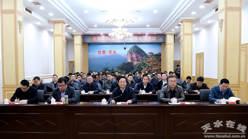 甘肅日報蘭州3月29日訊(記者徐錦濤)全省機(jī)構(gòu)編制工作電視電話會議今天下午召開,深入貫徹黨的十八大和十八屆三中、四中、五中、六中全會精神和習(xí)近平總書記系列重要講話精神,傳達(dá)學(xué)習(xí)全國編辦主任會議暨全國機(jī)構(gòu)編制工作先進(jìn)集體和先進(jìn)工作者表彰會議精神,總結(jié)交流去年全省機(jī)構(gòu)編制工作,安排部署今年工作任務(wù)。省委副書記、省長、省編委主任林鐸出席會議并講話。