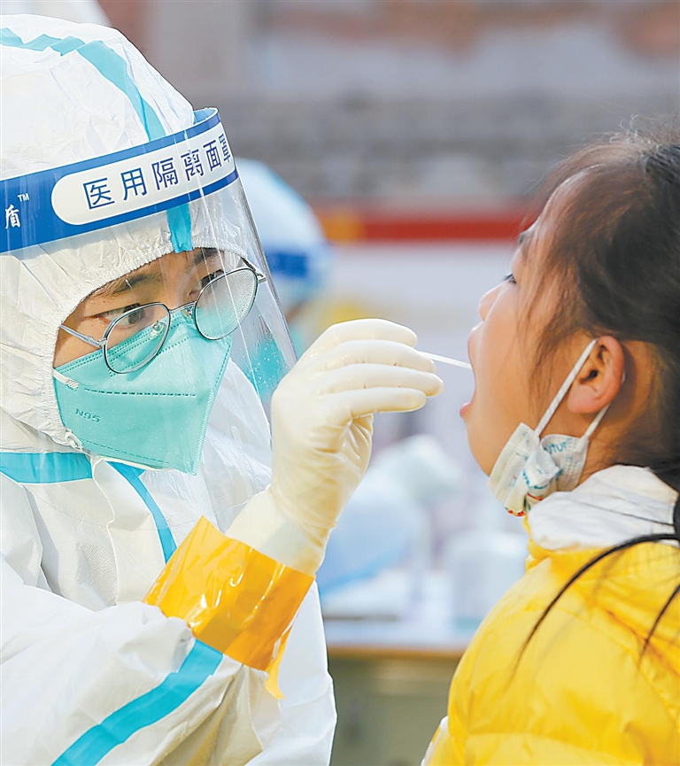 11月3日,醫(yī)護(hù)工作者在蘭州市安寧區(qū)十里店街道為市民進(jìn)行核酸采樣。掌上蘭州·蘭州晨報(bào)記者 田蹊