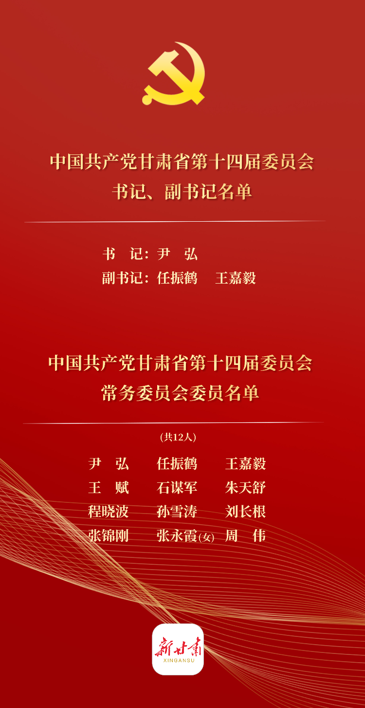 5月30日下午,中國共產(chǎn)黨甘肅省第十四屆委員會第一次全體會議在蘭州舉行。全會選出了中國共產(chǎn)黨甘肅省第十四屆委員會常務委員會委員、書記、副書記。