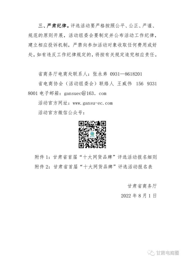 關于積極組織參與甘肅省首屆“十大網(wǎng)貨品牌”評選活動的通知
