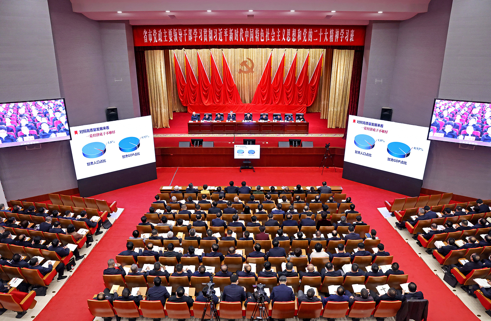 下午,任振鶴以“牢牢把握高質(zhì)量發(fā)展首要任務 加快推動甘肅現(xiàn)代化建設開好局起好步”為主題作了輔導報告。