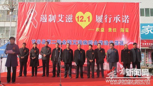 市政府副秘書(shū)長(zhǎng)李海成,市衛(wèi)生局局長(zhǎng)蒲朝暉、副局長(zhǎng)范多智,市疾控中心主任李西林,副主任高介亮應(yīng)邀出席宣傳活動(dòng);甘谷縣委副書(shū)記、縣長(zhǎng)賈忠慧,縣委常委、宣傳部部長(zhǎng)董珺,縣人大常委會(huì)副主任衡彬、韓金鼎,副縣長(zhǎng)潘慧琴,縣政協(xié)副主席王建國(guó)出席宣傳活動(dòng);縣防治艾滋病工作委員會(huì)成員單位負(fù)責(zé)人及城區(qū)附近群眾參加活動(dòng)。
