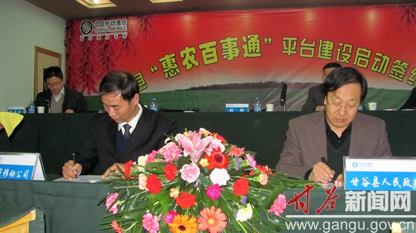 (縣委常委、副縣長楊帆與天水移動公司負(fù)責(zé)人簽約)