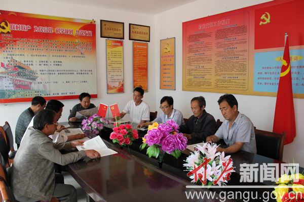 (大莊鄉(xiāng)人大主席馬俊吉正在城子村就“雙聯”工作召開村班子成員會議)