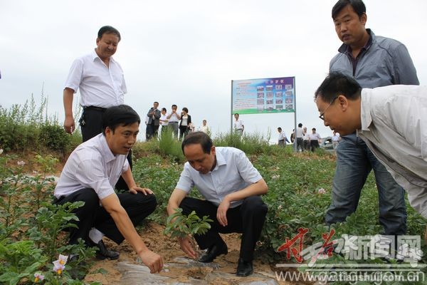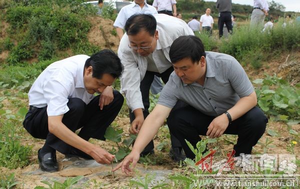 (縣委副書記、縣長申君明查看古坡鄉(xiāng)楊家坪村核桃園基地苗木成活情況))