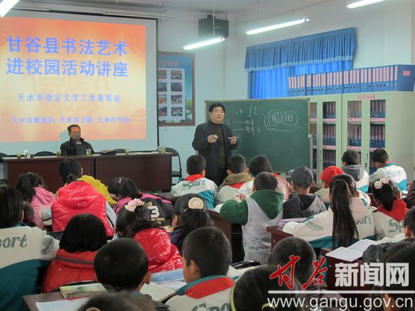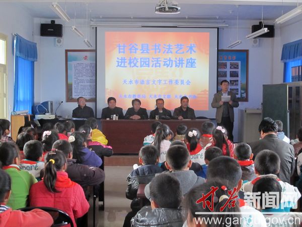 11月7日,由甘谷縣文聯(lián)牽頭,聯(lián)合縣教體局、縣書協(xié)等相關(guān)部門在大像山鎮(zhèn)十里鋪小學(xué)舉辦了第一屆書法藝術(shù)進(jìn)校園活動(dòng)專題講座。縣文聯(lián)主席張澤中、縣書協(xié)主席王賓、縣書協(xié)名譽(yù)主席蔣小牛及馬永虎、張弘揚(yáng)等書法家應(yīng)邀參加活動(dòng)。