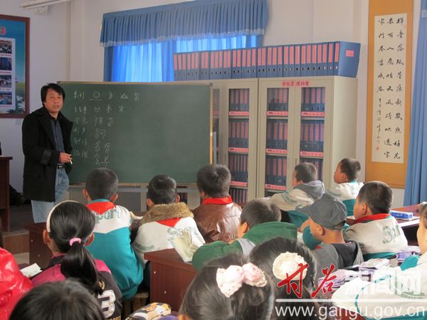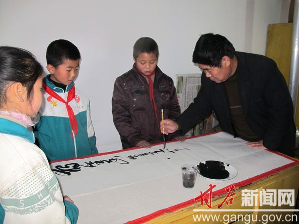 座談會(huì)后,張澤中、王賓、蔣小牛、馬永虎、張弘揚(yáng)等甘谷縣書法家對十里鋪小學(xué)的師生進(jìn)行了臨帖輔導(dǎo)和書法寫作示范。