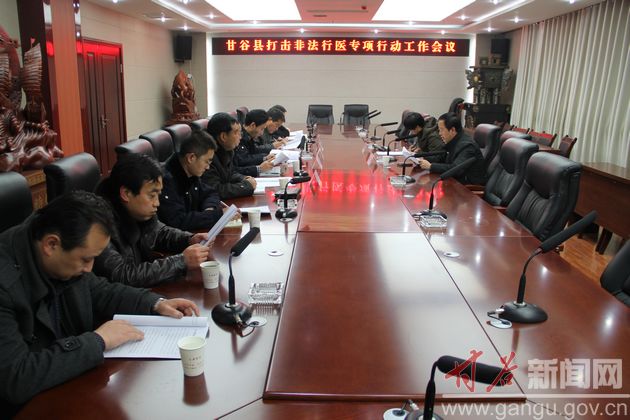 12月19日,甘谷縣召開打擊非法行醫(yī)專項行動工作會議,副縣長潘慧琴出席會議并作了重要講話,縣衛(wèi)生局局長薛希武宣讀了《甘谷縣整頓醫(yī)療秩序打擊非法行醫(yī)專項行動實施方案會議》,縣計生局、公安局、食藥監(jiān)局、工商局等部門負責人參加會議。