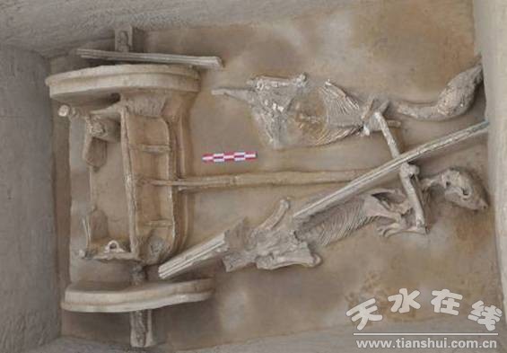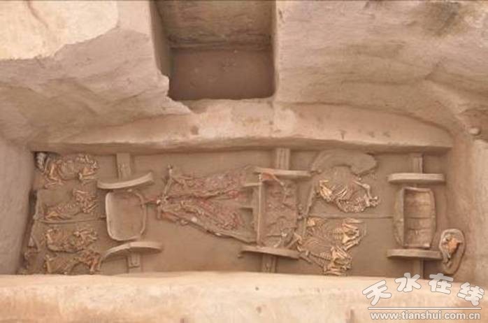 據(jù)了解,早在1982年、1983年甘肅省文物工作隊(duì),北京大學(xué)考古文學(xué)系兩次發(fā)掘了毛家坪遺址。在該遺址共發(fā)掘到三種文化遺存:以彩陶為特征的仰韶文化石嶺下類(lèi)型遺存,以繩紋灰陶為代表的周秦文化遺存,以?shī)A砂紅褐陶為特征的西戎文化遺存。2012年7月,經(jīng)國(guó)家文物局批準(zhǔn),早期秦文化聯(lián)合考古隊(duì)對(duì)毛家坪遺址進(jìn)行全面勘探發(fā)掘。迄今為止,探明遺址有墓葬千余座,累計(jì)發(fā)掘面積約4000平方米,清理春秋、戰(zhàn)國(guó)時(shí)期的大小墓葬199座、灰坑752個(gè),出土陶器、石器、玉器、青銅器、骨器等各類(lèi)小件文物1000余件,發(fā)掘大量繩紋灰陶片,其中出土鼎、簋、方壺、甗、孟、敦、盤(pán)、匜等青銅容器51件,出土短劍、戈、矛等青銅兵器11件。發(fā)掘車(chē)馬坑5座,其中最高級(jí)別的一座墓葬出土駕車(chē)3輛,駕馬10匹,車(chē)輿帶漆皮彩繪,車(chē)軾上有蟠虺紋彩繪,輿板白底紅彩,系貴族出行車(chē)輛。發(fā)掘大型墓葬兩座,其中一座為級(jí)別較高的貴族墓葬。