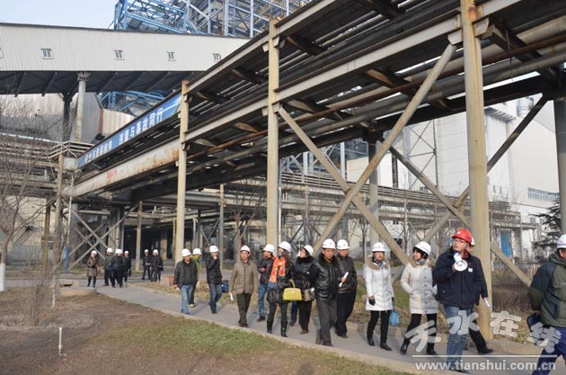 (與會人員觀摩大唐甘谷發(fā)電廠環(huán)境保護(hù)大檢查工作開展情況)