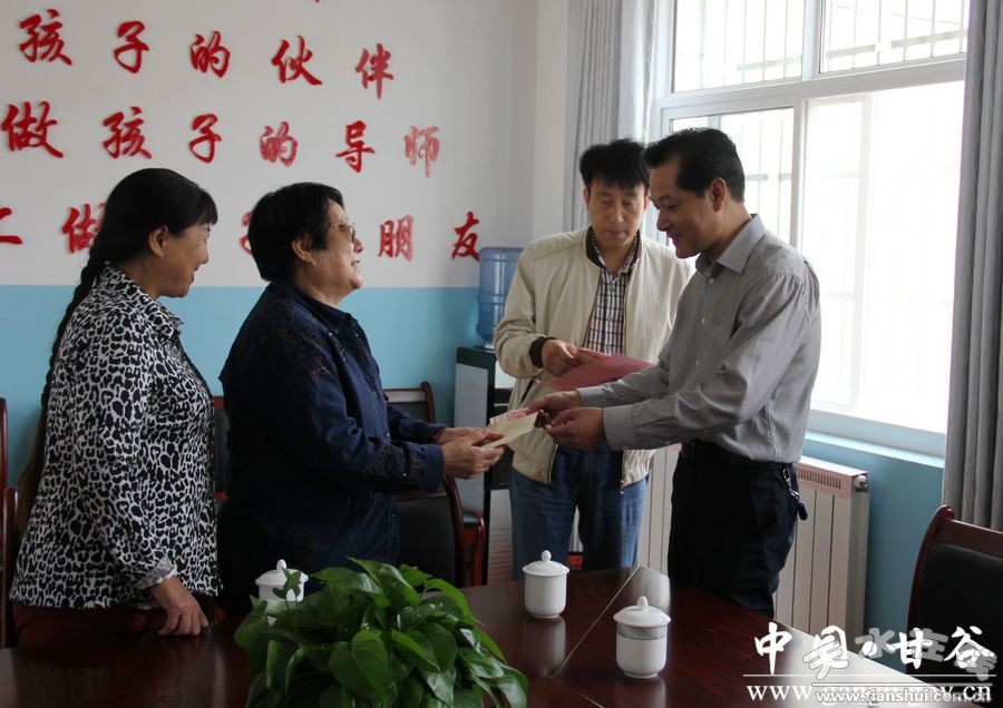 9月9日,在第31個教師節(jié)來臨之際,甘谷縣委副書記、縣長申君明帶領(lǐng)縣政府辦、教體局負(fù)責(zé)人來到甘谷一中、柳湖小學(xué)、模范中學(xué)、縣二幼、縣職校等地,看望慰問優(yōu)秀教師、困難教師和離退休老教師,給他們送去了慰問金,并通過他們向辛勤耕耘在教育戰(zhàn)線的廣大教師和教育工作者致以節(jié)日的祝賀和親切的問候。縣人大副主任韓金鼎陪同慰問。